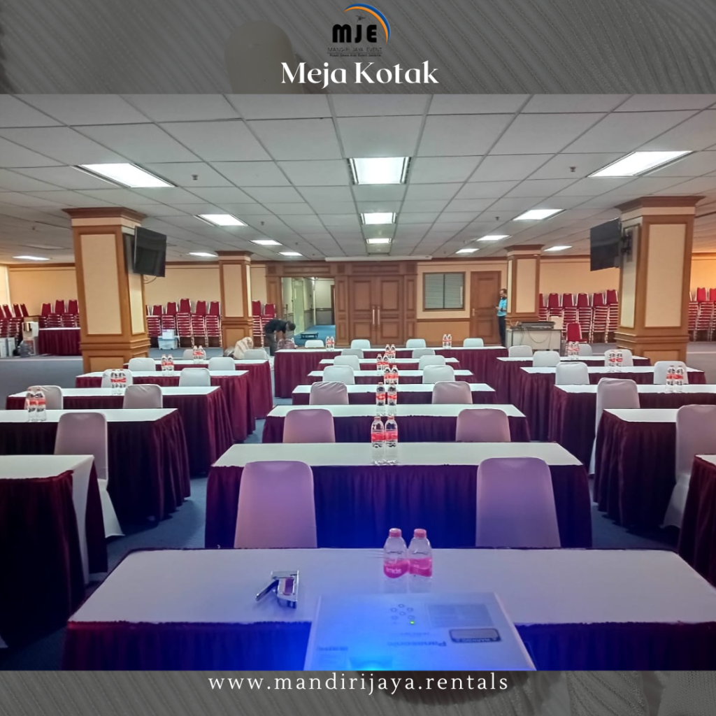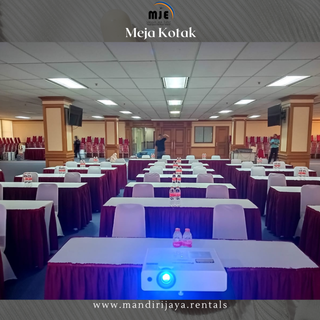 Sewa meja kotak kokoh dan mewah Cikarang Jawa Barat. CV MANDIRI JAYA KOLABORASI adalah tempat sewa berbagai macam perlengkapan alat pesta terlengkap, termurah, terbaik dan dijamin terpercaya. Apapun perlengkapan yang anda butuhkan jangan ragu untuk order disini karena kami siap melayani anda dengan sepenuh hati.