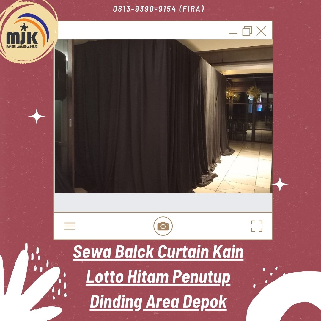 CV Mandiri Jaya Kolaborasi menawarkan layanan sewa black curtain kain Lotto hitam untuk penutup dinding di area Depok.