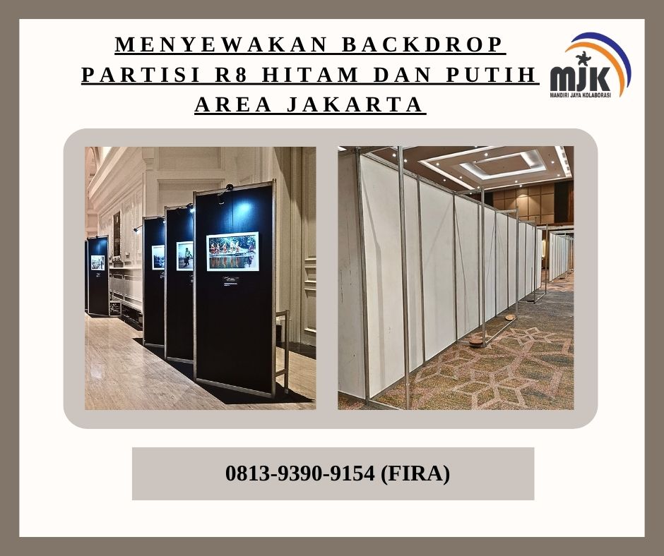 CV Mandiri Jaya Kolaborasi menyewakan backdrop partisi R8 hitam dan putih di area Jakarta. Dengan tampilan yang elegan dan profesional, backdrop kami siap meningkatkan kesan eksklusif pada acara Anda.