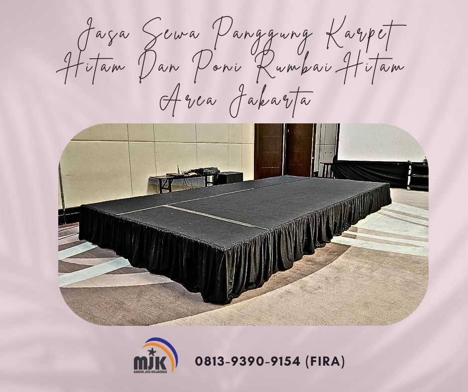 CV Mandiri Jaya Kolaborasi menyediakan Jasa Sewa Panggung Karpet Hitam Dan Poni Rumbai Hitam Area Jakarta.